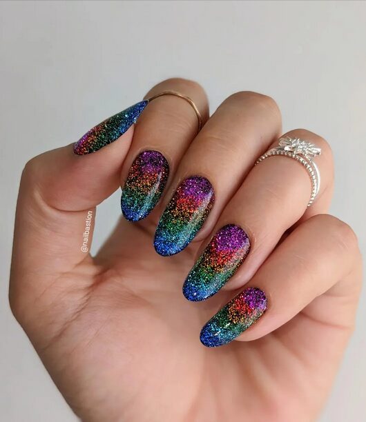 Add a shimmering touch with a glitter overlay on top of your rainbow-colored base.
